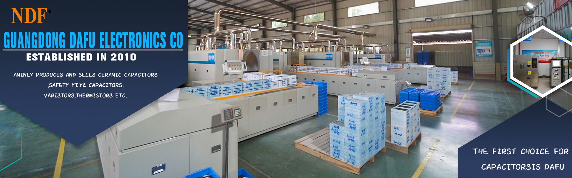 Dongguan Dafu Electronics Co., Ltd., established in 2010, mainly produces and sells ceramic capacitors, safety Y1, Y2 capacitors, varistors, thermistors etc.